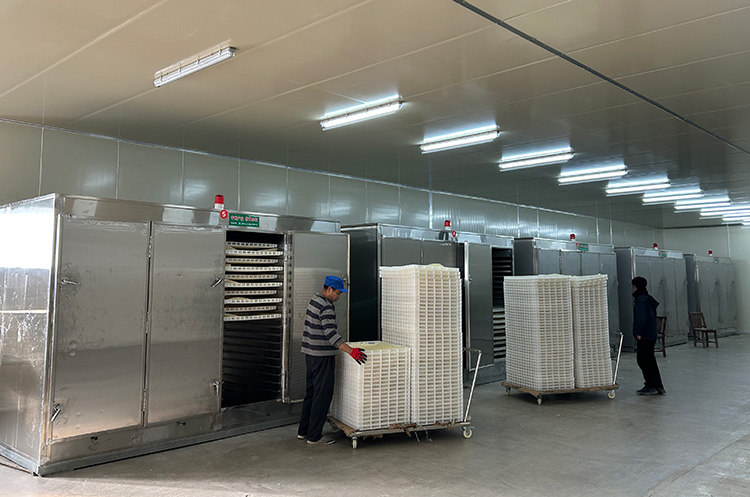 新鮮銀耳含水量高達(dá)75%左右,易受霉菌污染變質(zhì),故而需要及時進(jìn)行烘干加工處理,所以我們在市場看到的多為干銀耳。鮮銀耳在烘干過程中,需要及時排濕,而且溫度又不宜過高,這樣才能夠讓銀耳烘干后顏色達(dá)到要求。以前,銀耳烘干有晾曬法和烘箱烘干法,但這兩種都有弊端,曬干的方法簡單實惠,但依賴于天氣變化,一般要晾曬2-3天才能曬干,耗時長,曬干的成品控制不穩(wěn)定,不適合市場大批量烘干。而烘箱烘干法,需要人工不斷的翻轉(zhuǎn)物料,導(dǎo)致熱量損耗大,銀耳外形容易受損,溫度控制不穩(wěn)定,成品差異大。用賽百諾空氣能熱泵銀耳烘干機(jī)進(jìn)行銀耳烘干,烘干均勻,保證每一朵銀耳質(zhì)量保持一致,智能控制溫濕度,成品外觀白中微黃、透明、形狀好,品質(zhì)好,價值高。