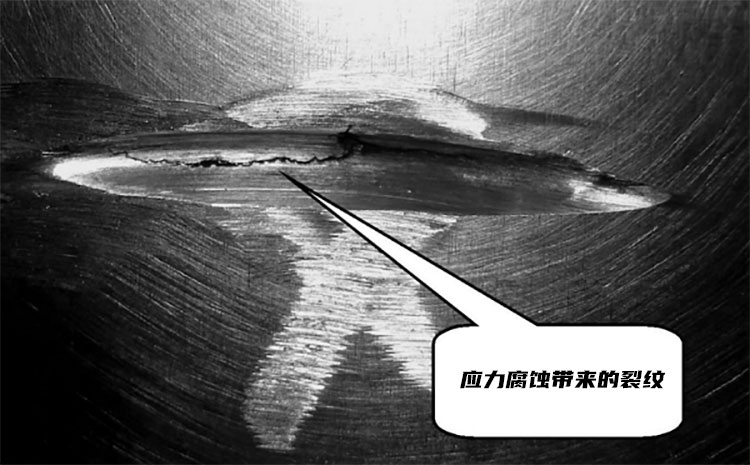 這里講的腐蝕是點(diǎn)蝕,壓力容器中更可怕的是應(yīng)力腐蝕。應(yīng)力腐蝕與氯離子濃度關(guān)系不是很大,即使微量的氯離子,也會(huì)產(chǎn)生應(yīng)力腐蝕。如果氯離子濃度再高些,點(diǎn)蝕同時(shí)會(huì)起到嚴(yán)重的腐蝕作用。換熱盤管在加工過(guò)程中不可避免會(huì)產(chǎn)生應(yīng)力,如果有輕微劃傷,應(yīng)力集中現(xiàn)象會(huì)更加嚴(yán)重。盡管在加工過(guò)程中也有消除應(yīng)力的工序,但有這道工序也不能解決問(wèn)題,因?yàn)楸P管作為冷凝器其中是高溫高壓的制冷劑,這個(gè)高壓產(chǎn)生的力是沒(méi)法消除的。況且換熱盤管還處于較高的溫度,有資料表明,溫度每升高10℃,腐蝕的速度增加約1-3倍。